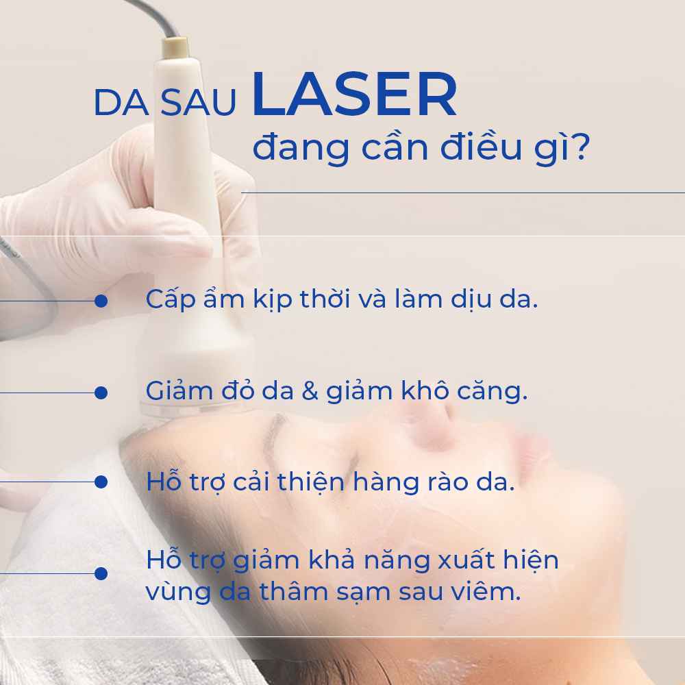 Đối với da sau laser, khả năng cấp ẩm sâu đóng vai trò quan trọng trong việc giúp da nhanh chóng cân bằng và hạn chế tình trạng bong tróc.