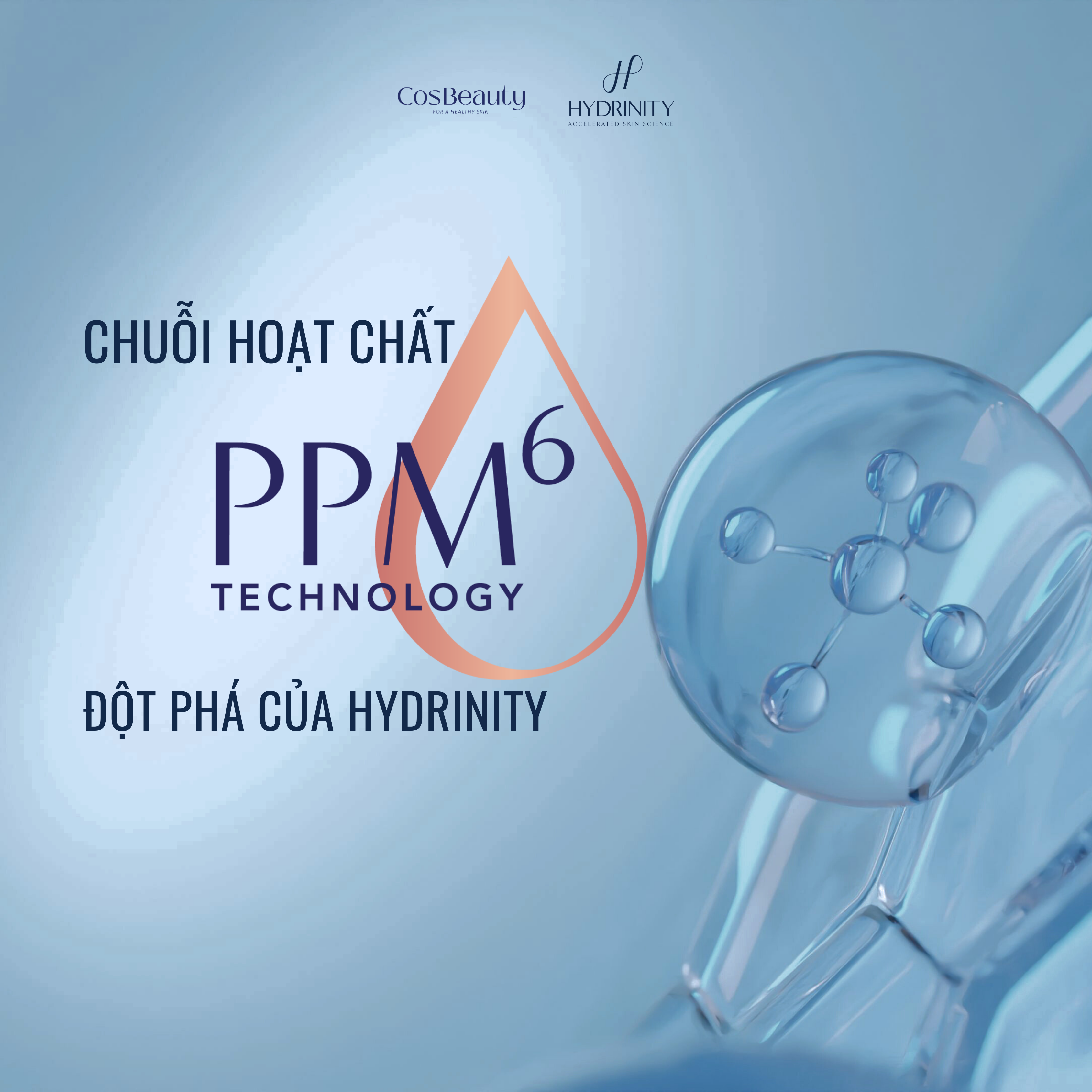 Trong các công thức chăm sóc da hiện đại, việc kết hợp nhiều nhóm hoạt chất có cơ chế hoạt động bổ trợ lẫn nhau giúp nâng cao hiệu quả dưỡng da. Hydrinity đã phát triển PPM6 Technology, một chuỗi hoạt chất được nghiên cứu nhằm hỗ trợ cấp ẩm sâu, dưỡng ẩm lâu và chăm sóc da chuyên sâu.