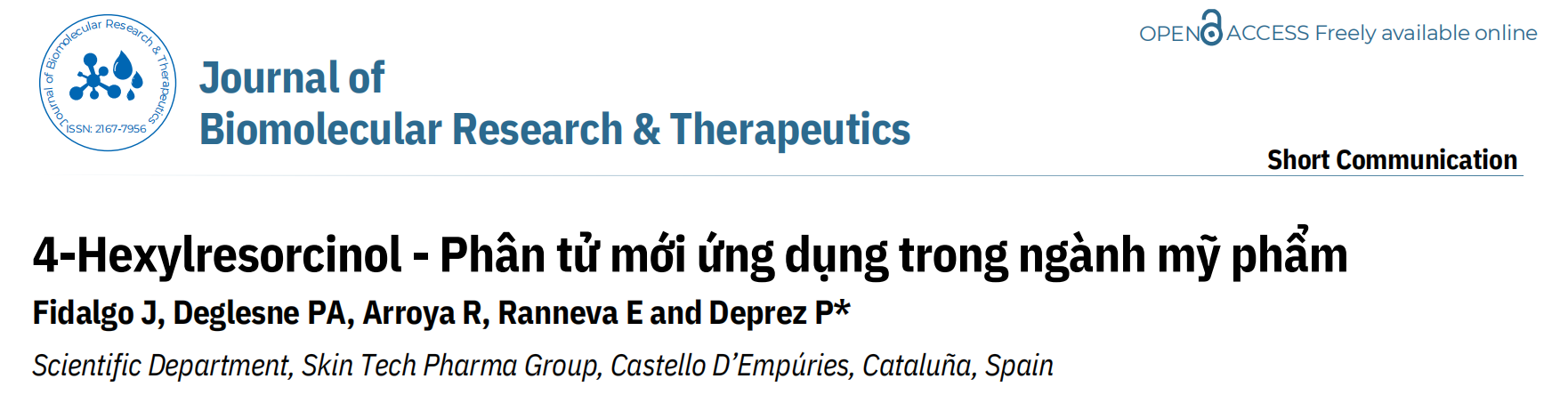 Trích dẫn: Deprez P (2019) 4-Hexylresorcinol a New Molecule for Cosmetic Application. J Biomol Res Ther, 8: 170. doi: 10.35248/2167-7956.19.8.170