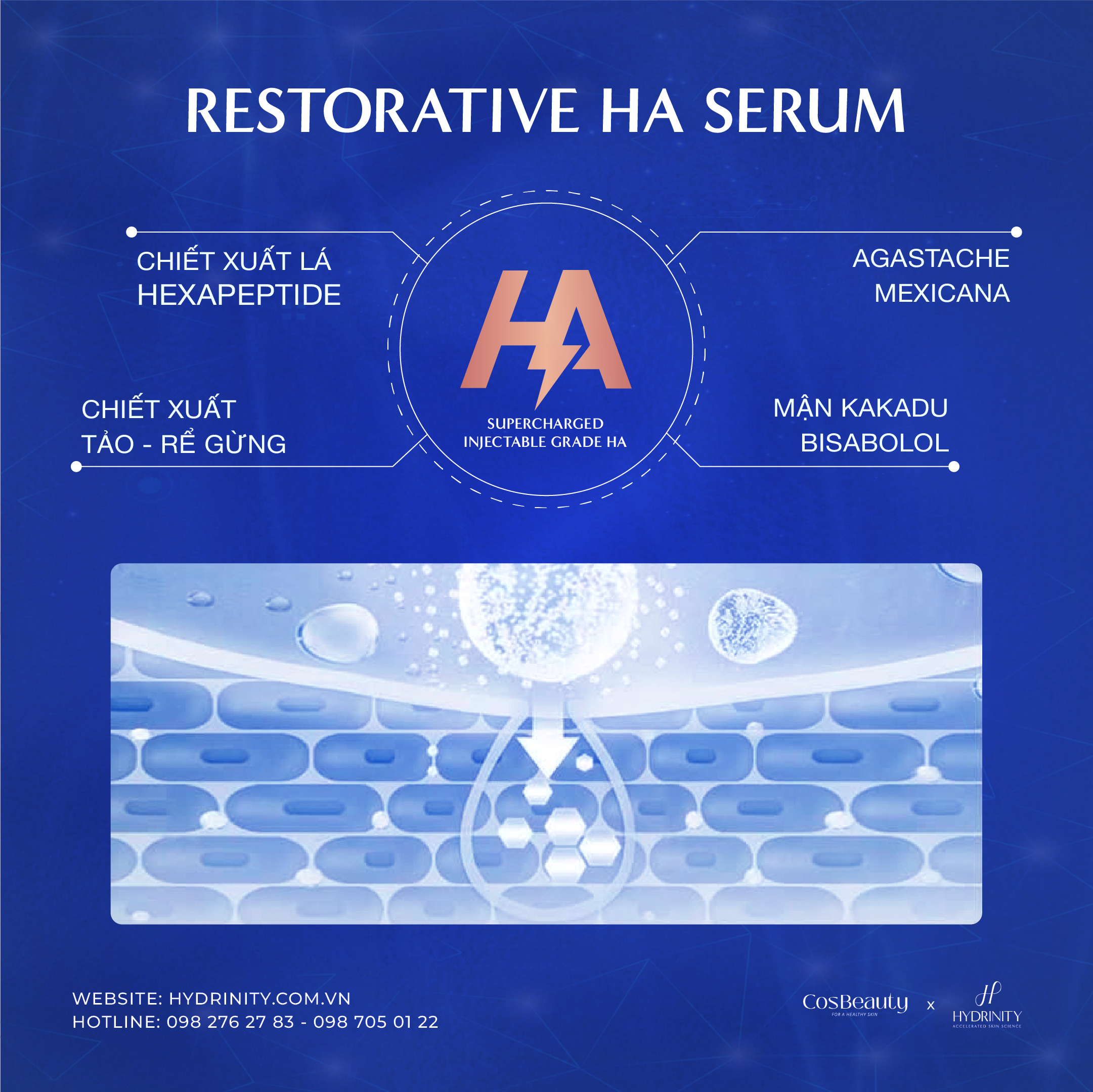 Restorative HA Serum: Cấp ẩm sâu với HA trọng lượng phân tử kép