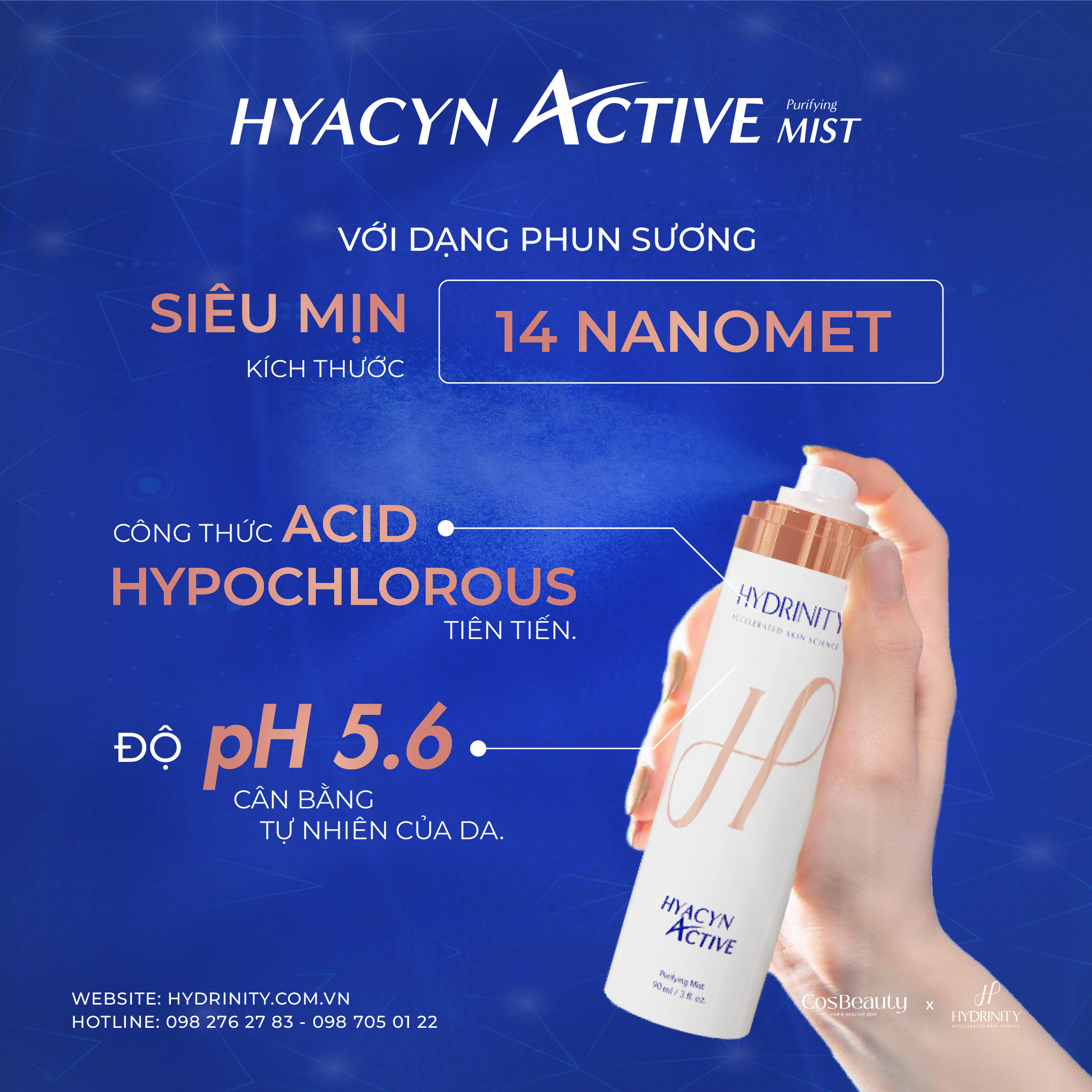 HYACYN Active Mist: Công nghệ HOCl tiên tiến & pH 5.6 cân bằng da