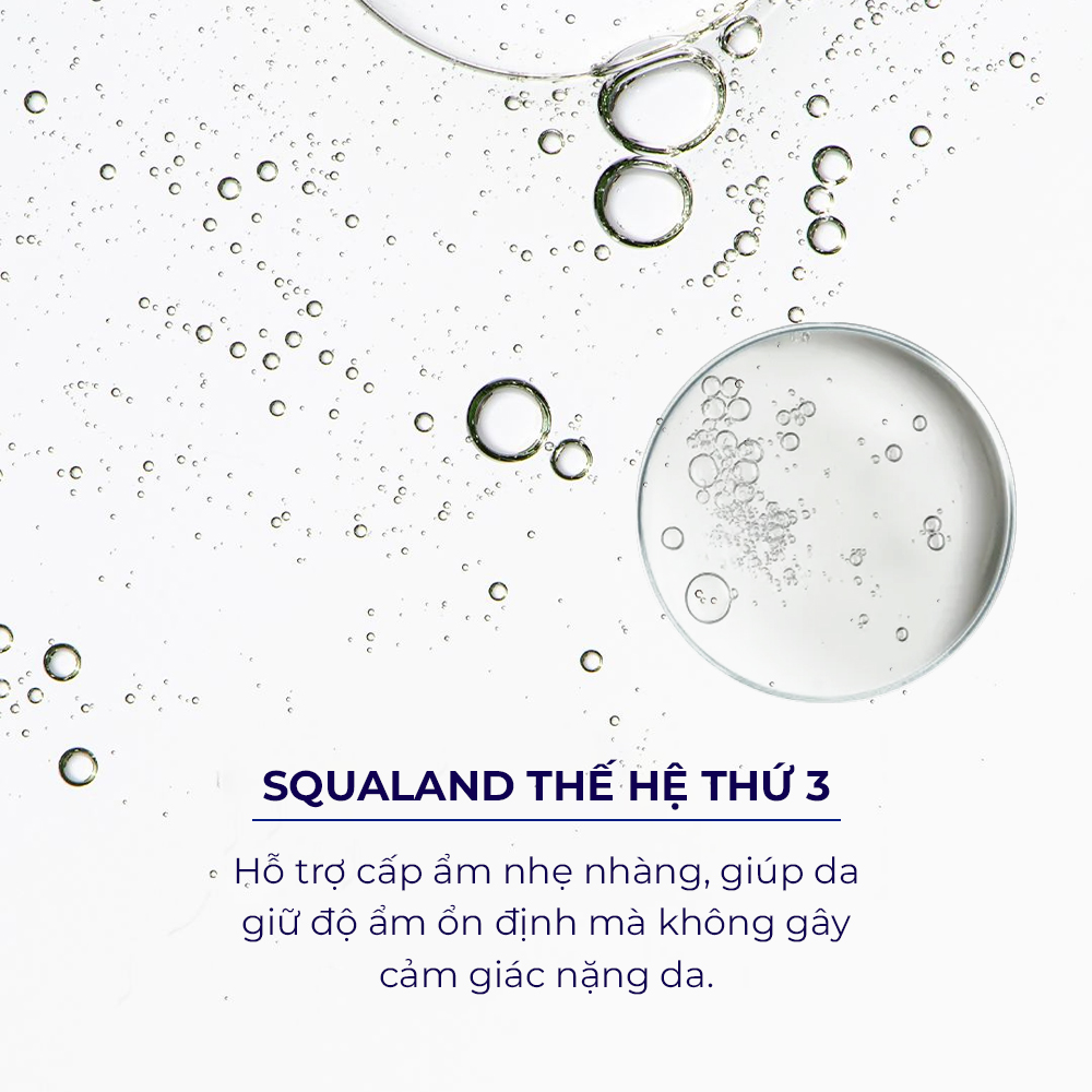 Squalane giúp giữ nước hiệu quả, hỗ trợ làn da duy trì trạng thái ẩm mượt lâu hơn.