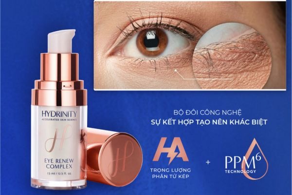 Hydrinity Eye Renew Complex là dòng kem dưỡng ẩm mắt có công thức đa tác động, có thể hỗ trợ cung cấp độ ẩm và hỗ trợ cải thiện vẻ ngoài của vùng da quanh mắt. Sản phẩm được phát triển với Hyaluronic Acid cùng công nghệ PPM6™ nhằm hỗ trợ cấp ẩm sâu và góp phần giúp vùng da mắt trông căng mịn hơn.